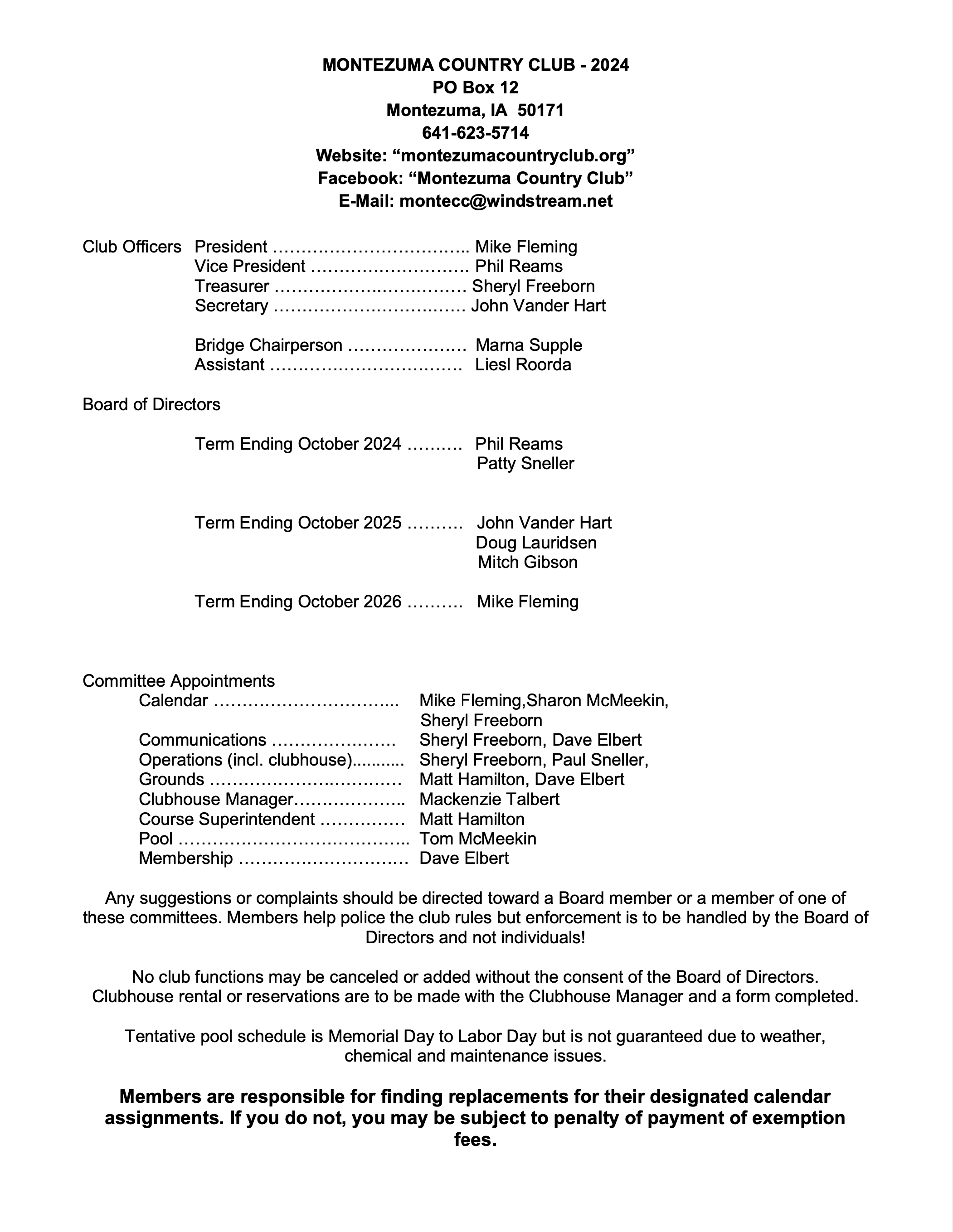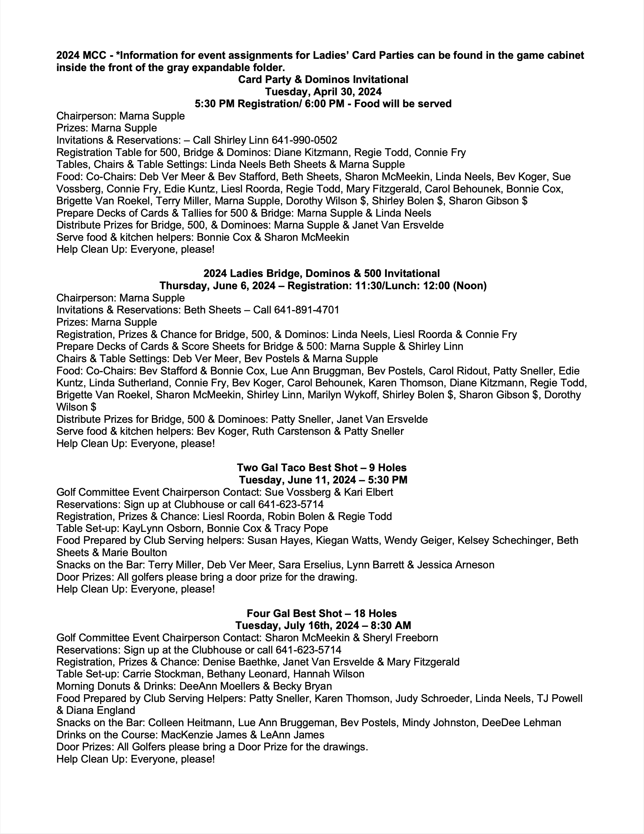 NOTE: Below is the club information from the 2024 golf season. We are hoping to have this updated by April of 2025. Please check back then, or use the information below as a reference only.